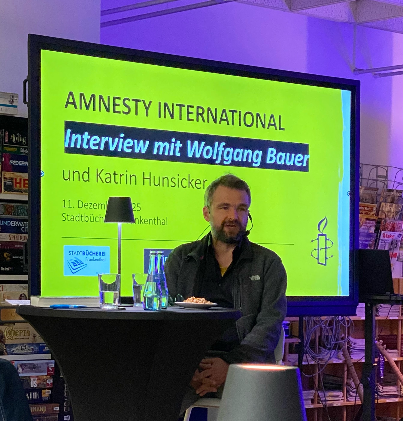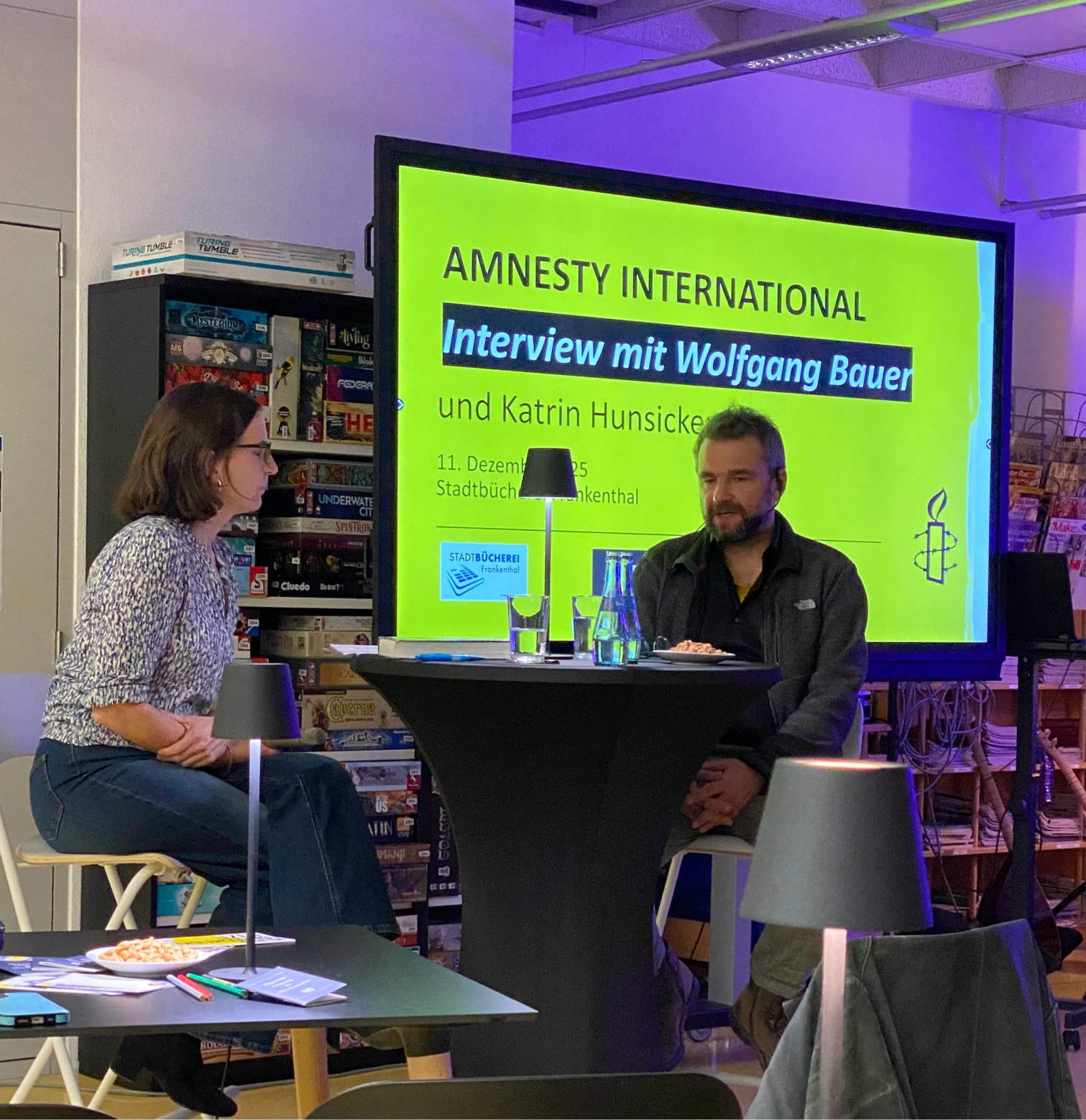 Gleich an zwei aufeinanderfolgenden Tagen hatten wir einen besonderen Gast zu unserem Amnesty-Briefmarathon: den Journalisten und Autor Wolfgang Bauer.